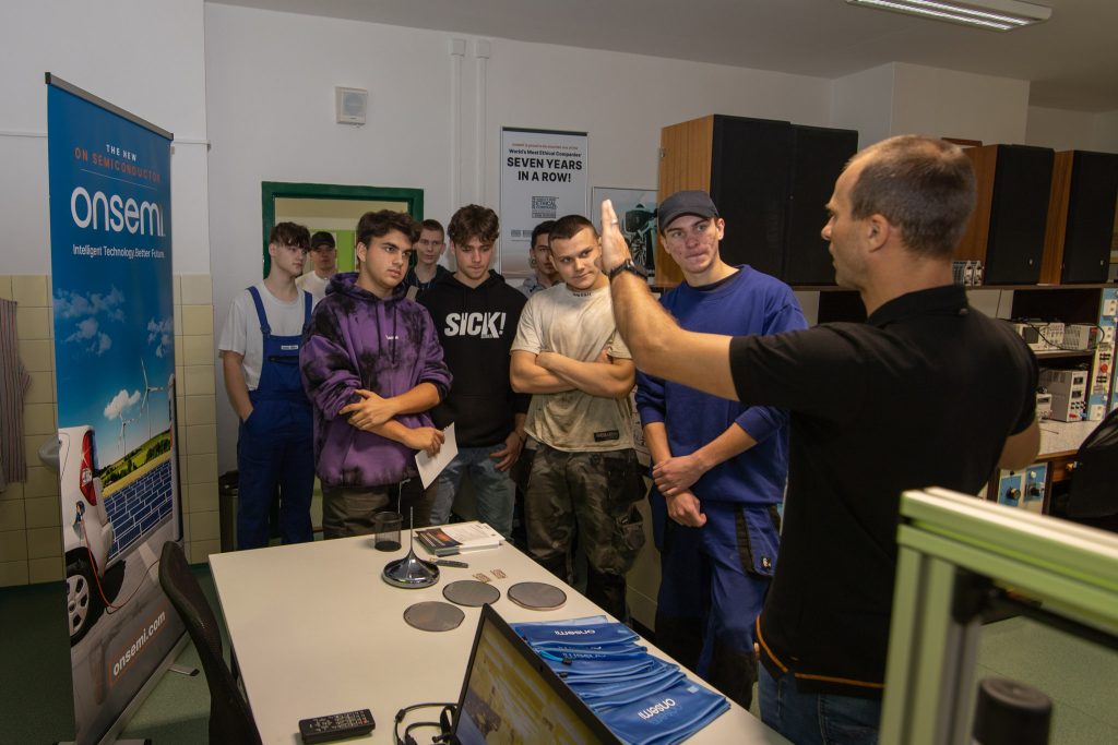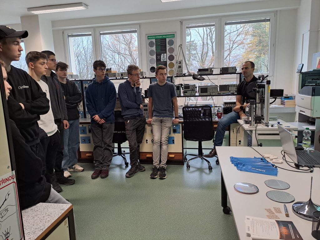 Byl to jeden velký kolotoč. Už od rána se hrnuly doslova desítky žáků všech ročníků střední školy i mladších deváťáků, kteří se teprve rozhodují, jakým směrem se po základní škole vydají. Všichni byli zvědaví, co nejen onsemi nabízí. Kolegyně Eva představila naši firmu a možnosti co se týká stáží, stipendií a následných pracovních příležitostí. O technický výklad se postaral kolega Svaťa. Zpětná vazba od žáků přicházela ve formě dotazů a zájmu o naše výrobky, konkrétně křemíkové a silikonkarbidové desky a samotné čipy. Takto se během celého dopoledne vystřídalo několik skupin studentů, kteří odcházeli nabití novými informacemi.