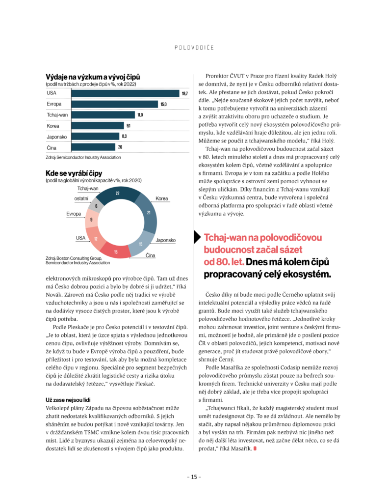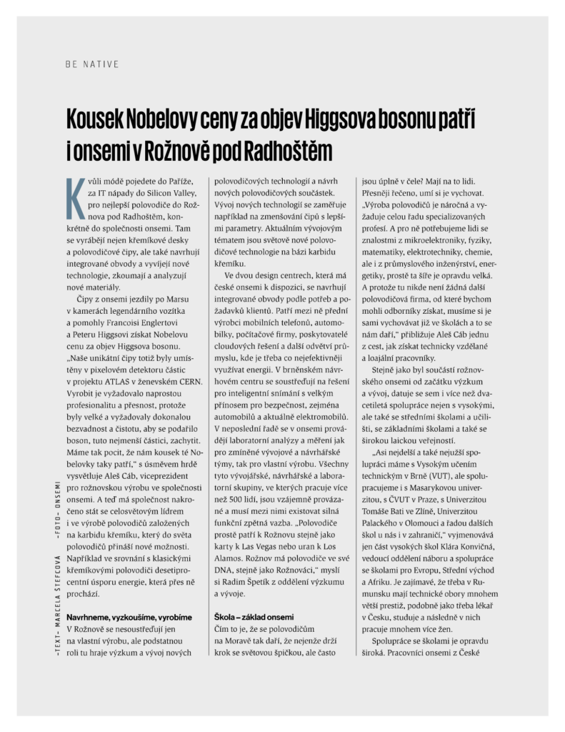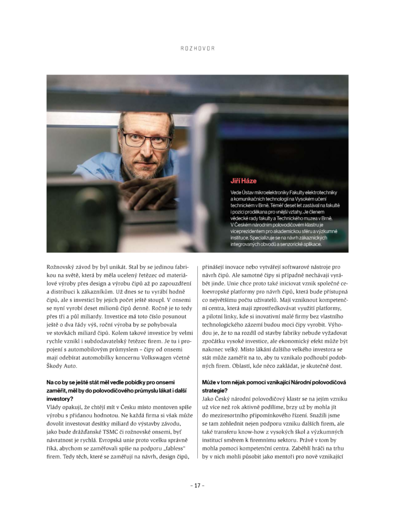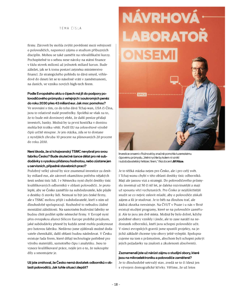 Nemohli jsme chybět v týdeníku Ekonom s tématem Čipová velmoc Česko. Zaměřuje se totiž na budoucnost českého polovodičového průmyslu. Dozvíte se spoustu zajímavých informací o přicházející čipové revoluci, roli České republiky i české onsemi.